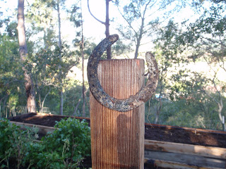 With last year’s harvest, I tried more carrot recipes than one would think possible – carrot breads, carrot muffins, carrot quiche, carrot souffle, carrot juice – even carrot and lentil curry! I did not make ANY corn dishes, solely because the gopher got to eat ALL THE CORN! I did steal one premature ear of corn just as he was pulling it down the hole! The horseshoe shown below is the horseshoe we found in the garden – apparently it was lucky for the gopher!