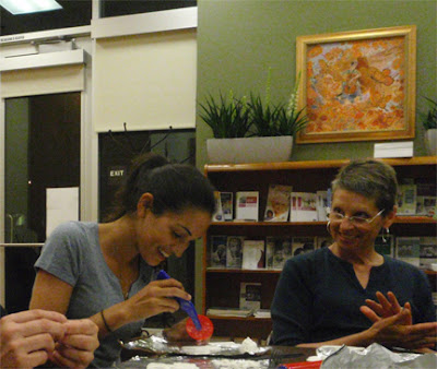 (above and below) Melanie showing her mom Rose her impressive fork and other techniques. What a great super-talented, super-fun Mother-Daughter team!