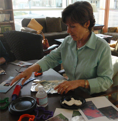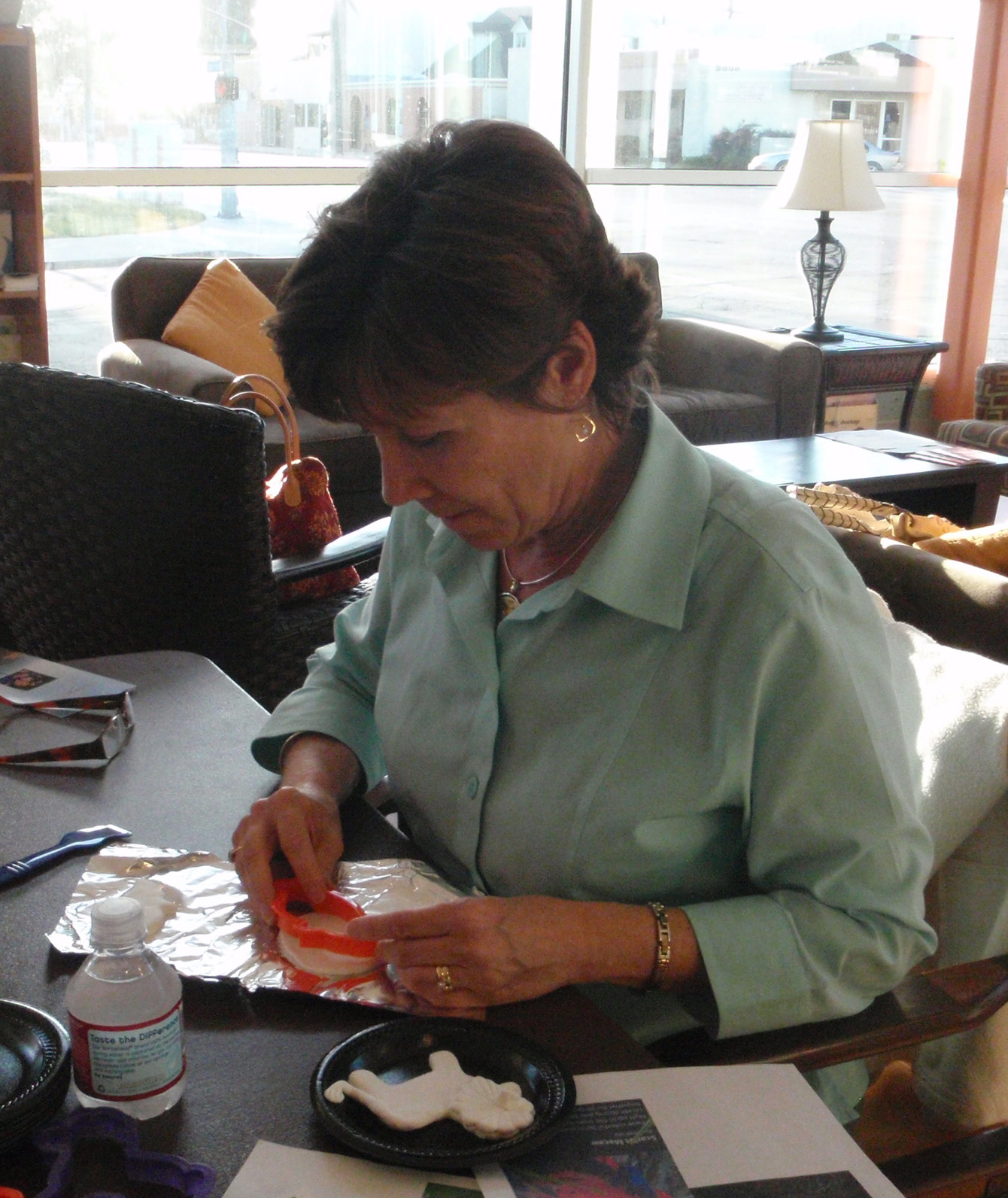 Gillian (photo above) demonstrating her rolling technique (and see her cute owl!), and smiling graciously for the camera (below)