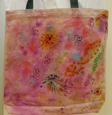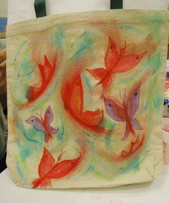 Thanks to the wonderful fabric paints generously donated by iLOVEtoCREATE, we were able to create our own one-of-a-kind, earth-friendly reuseable grocery totebags! No more plastic bags for us! I was absolutely wowed by the beautiful creations of CreativityCentral last night – here are some photos – I think you will be VERY impressed!
